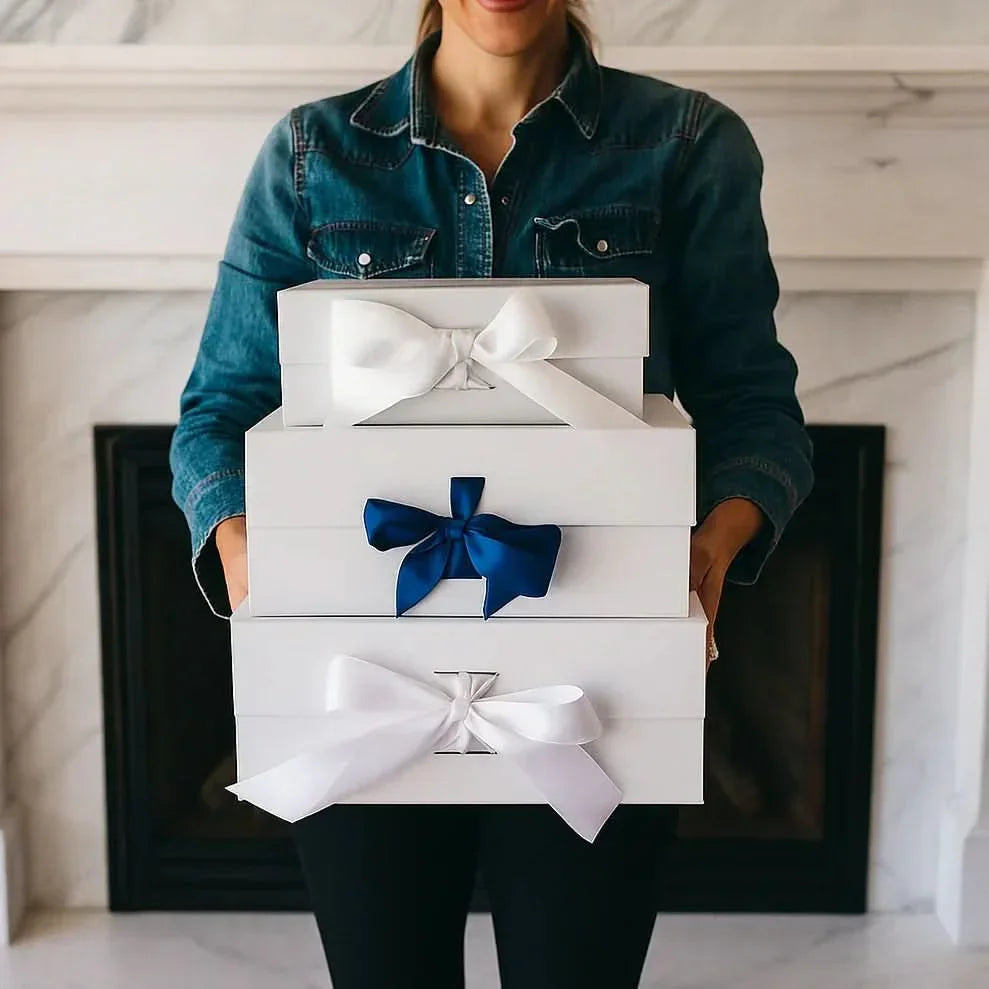 You choose the items; we’ll hand-pack them in a luxe white box, tie a satin bow, and ship it fast. Every gift arrives beautifully wrapped and ready to impress.