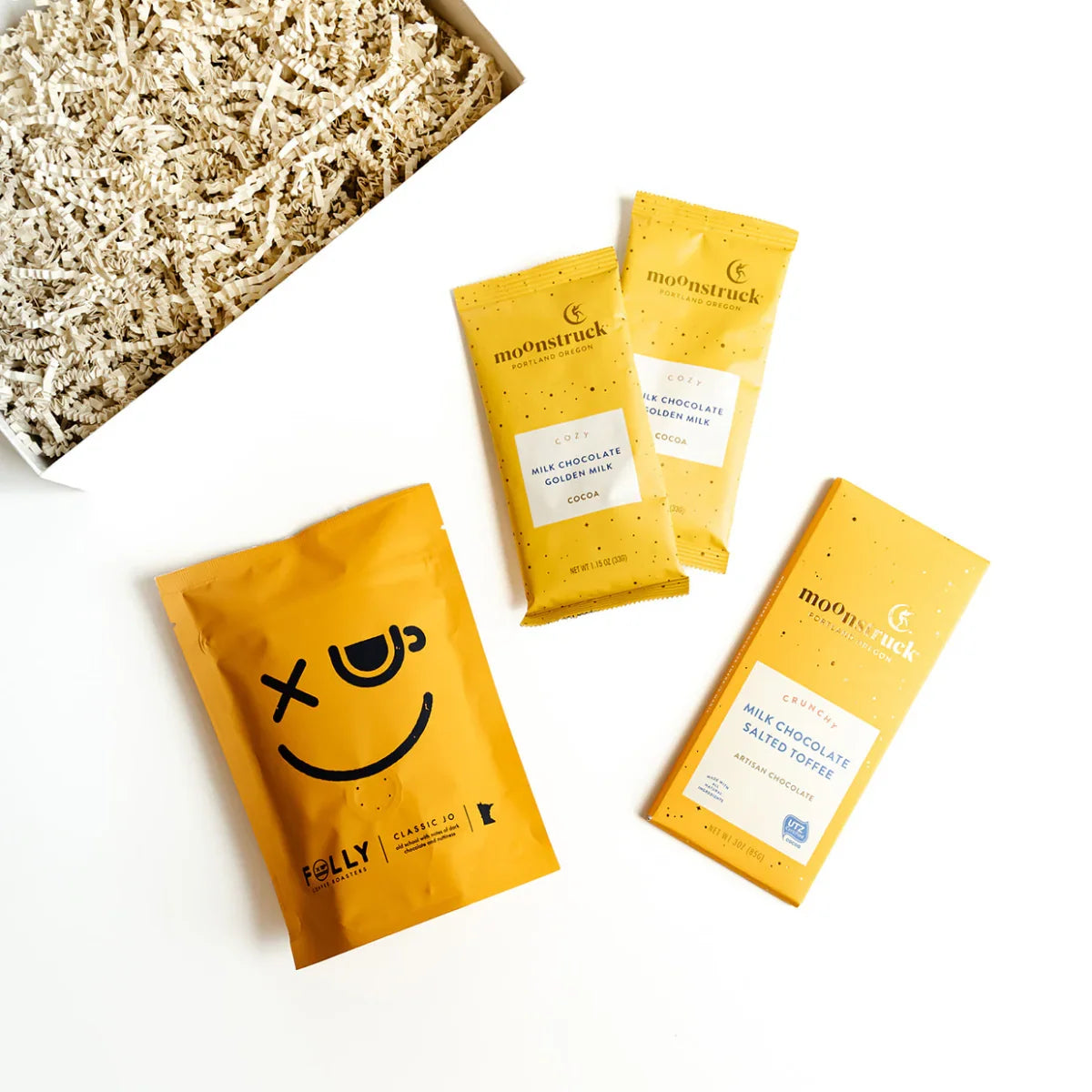 Golden Milk Chocolate Cozy Hot Cocoa Single-Serve Pouches (2 units) — Smooth and comforting cocoa with subtle spice.