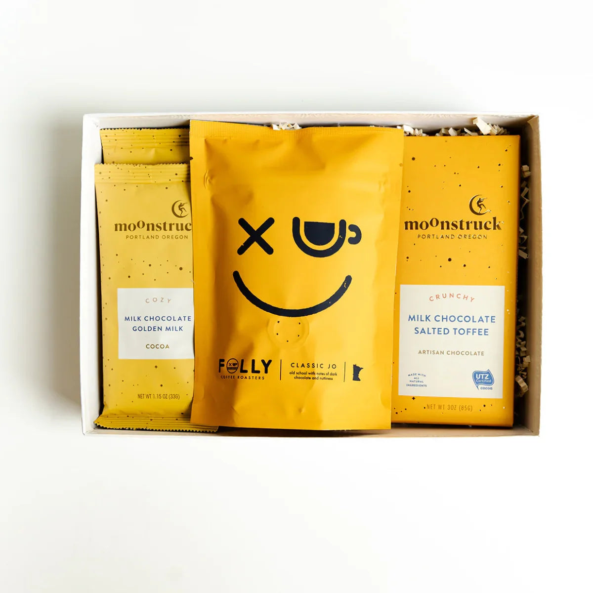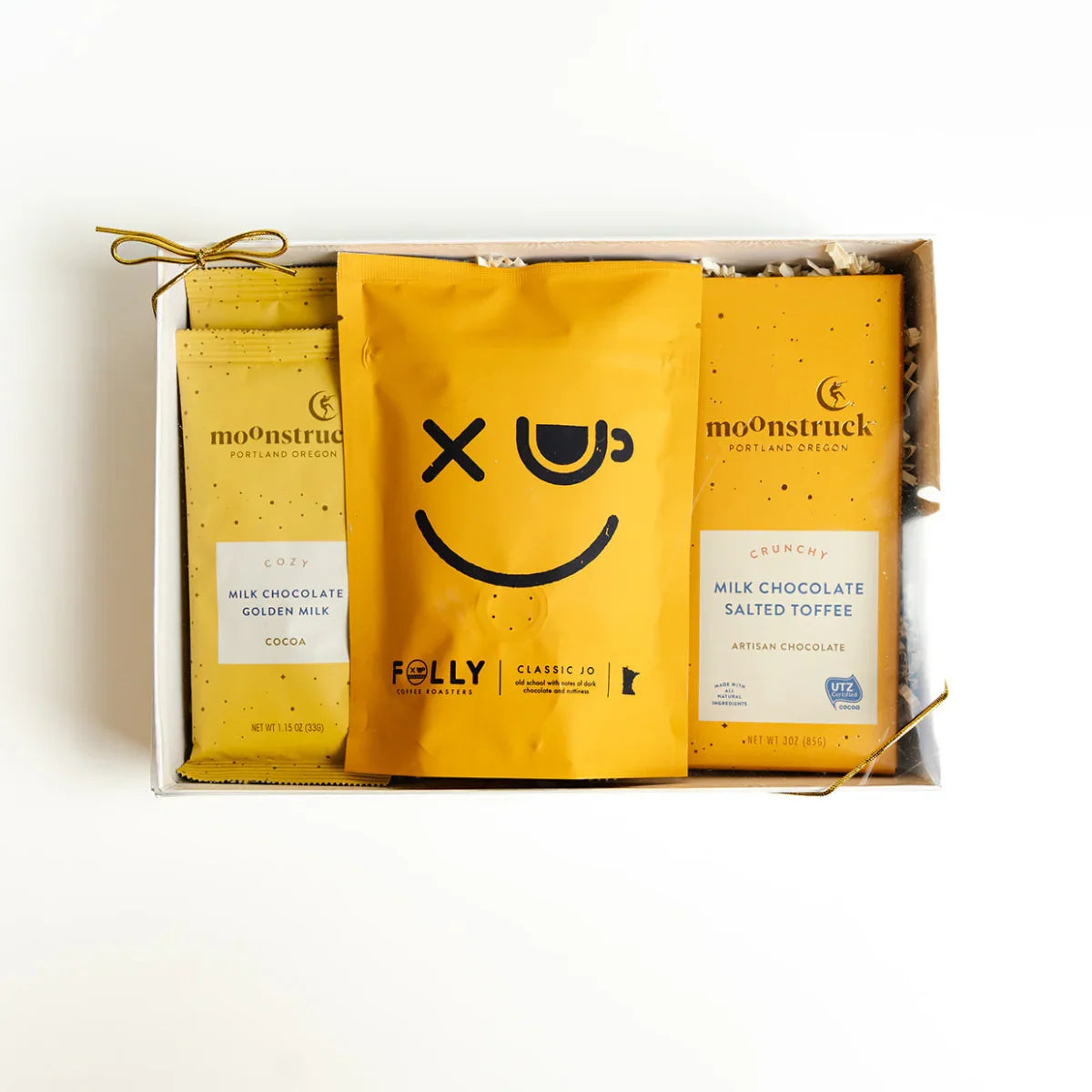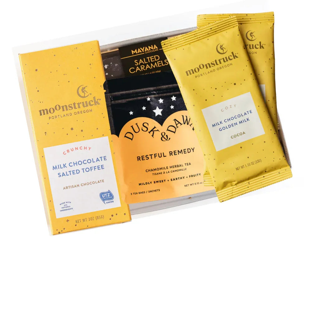 The Sweets & Treats Bento Box – Golden brings together smooth caramel, buttery toffee, and cozy cocoa for an indulgent yet refined treat. Whether you choose the Tea or Coffee edition, each version is designed to brighten their day with comforting, golden-hued warmth.