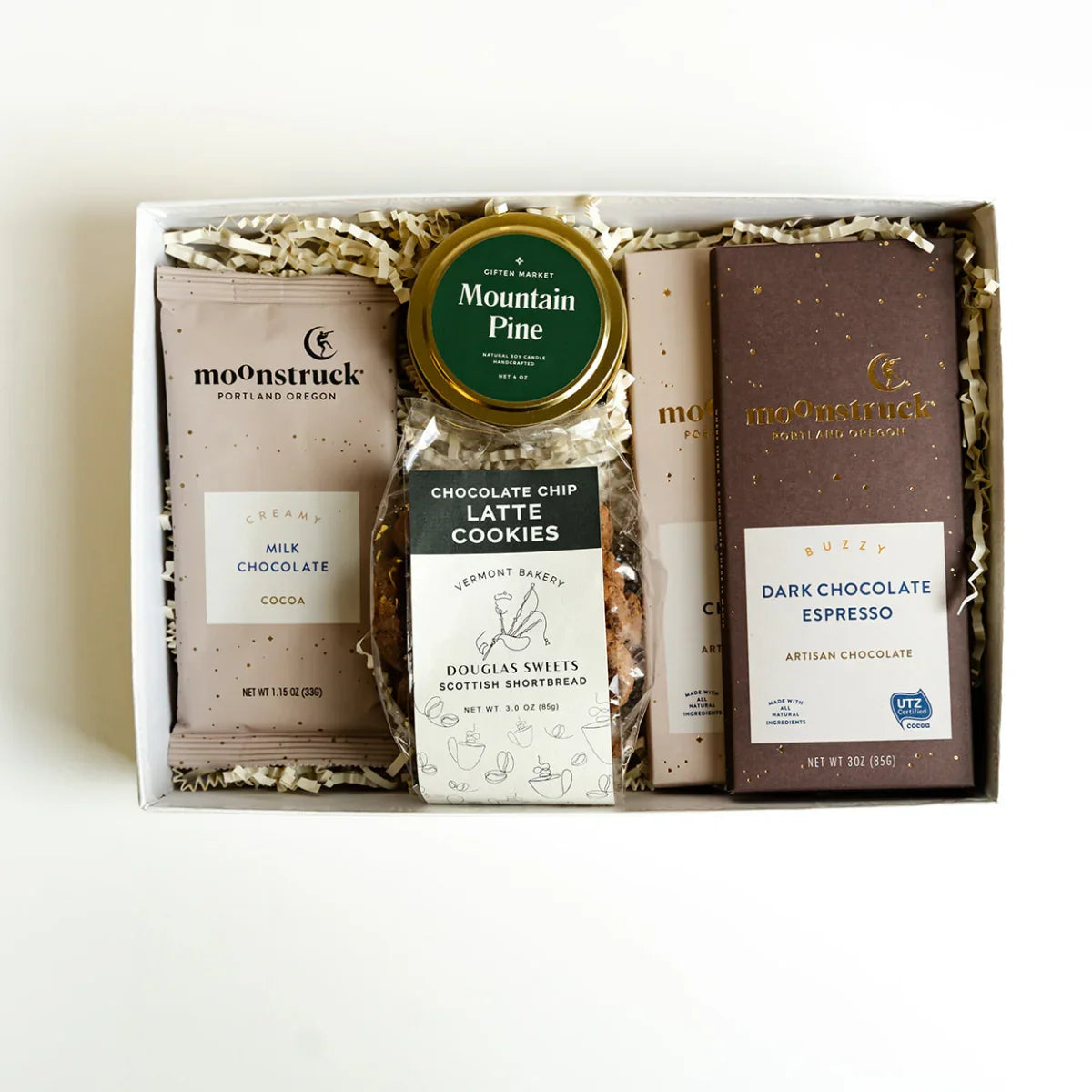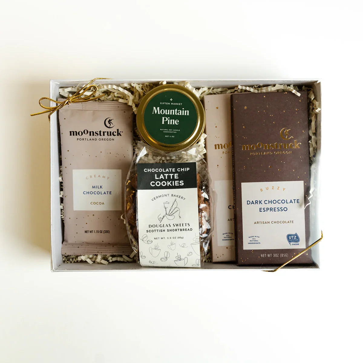 The Sweets & Treats Bento Box – Mountain Pine combines artisan chocolate, buttery cookies, and a crisp pine candle inspired by winter’s calm. It’s a thoughtful, unisex gift designed to bring comfort and a hint of the outdoors to any setting—perfect for clients, colleagues, or anyone who could use a moment of calm and sweetness.