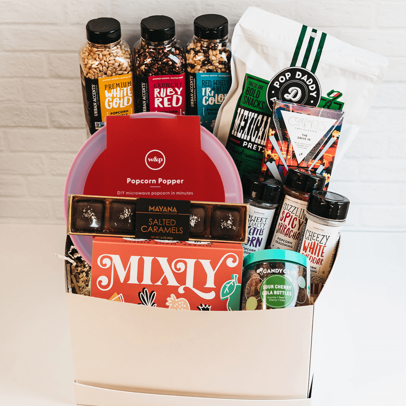 Step up your movie night game with this ultimate gift box. It comes packed with all the goodies you need for a delicious and decadent experience. There's a variety of popcorn flavors and seasonings to choose from, as well as decadent chocolate bars and candies. Whether you're gearing up for an epic movie marathon or just want a special treat for your next viewing party, this gift box is a total crowd-pleaser