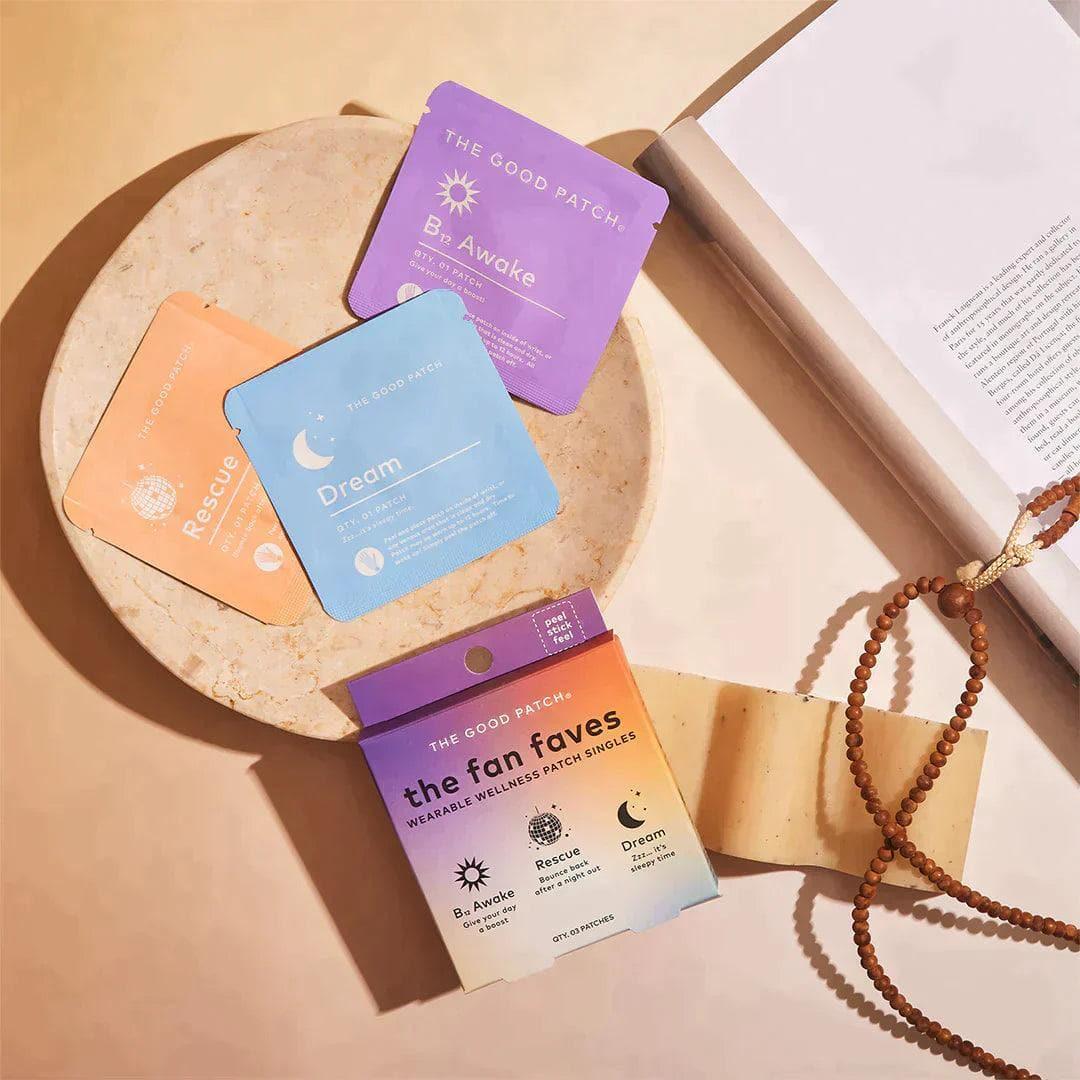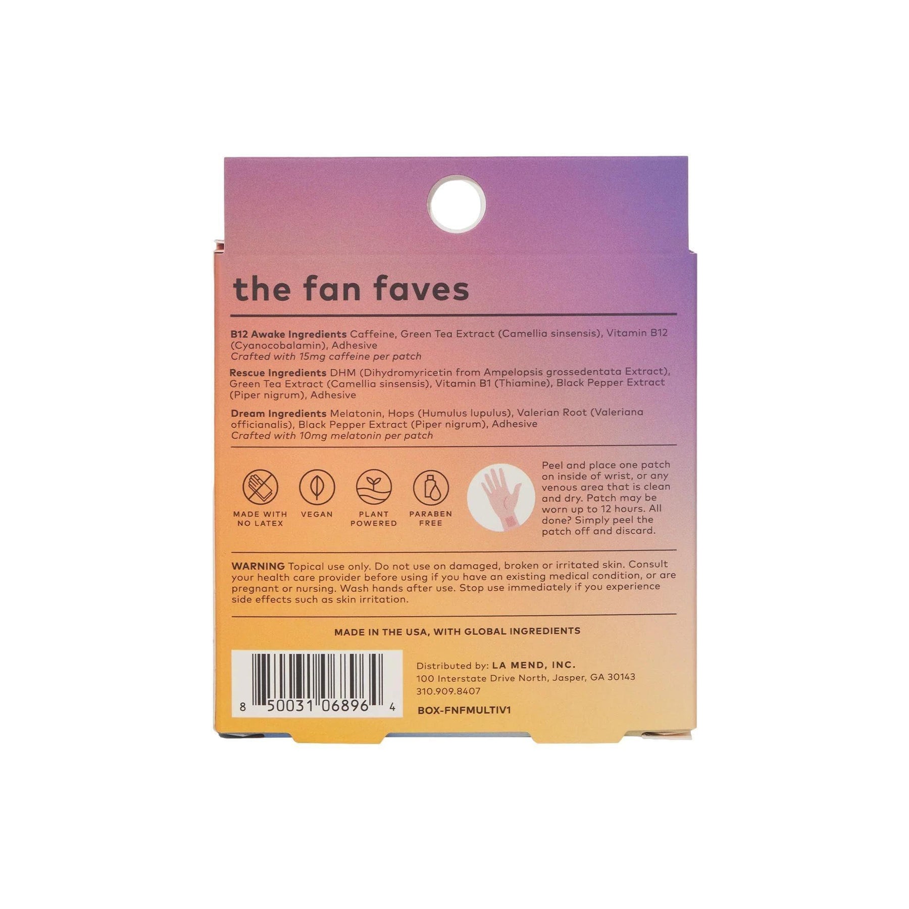 The perfect set for on-the-go wellness. The Fan Faves Set includes 1 B12 Awake patch, 1 Dream patch, and 1 Rescue patch. This patch sampler trio is the ultimate travel companion!