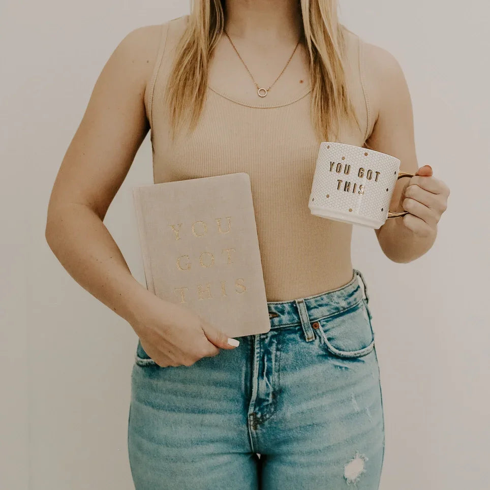Write down all of your goals and dreams in our You Got This tan and gold fabric journal! With this chic, stylish, easy to write on notebook, there's no better place to jot down motivational notes, inspirational quotes, lists, and all of your great ideas. Pair this journal with our You Got This devotional and pens!