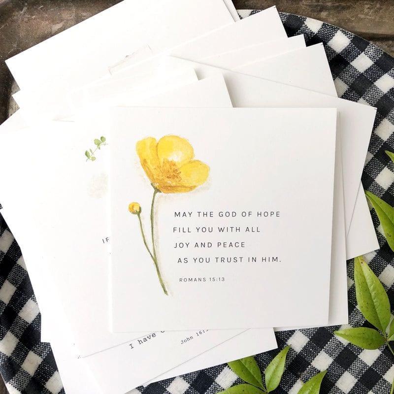 • Set of 31 cards featuring favorite Bible verses and watercolor illustrations