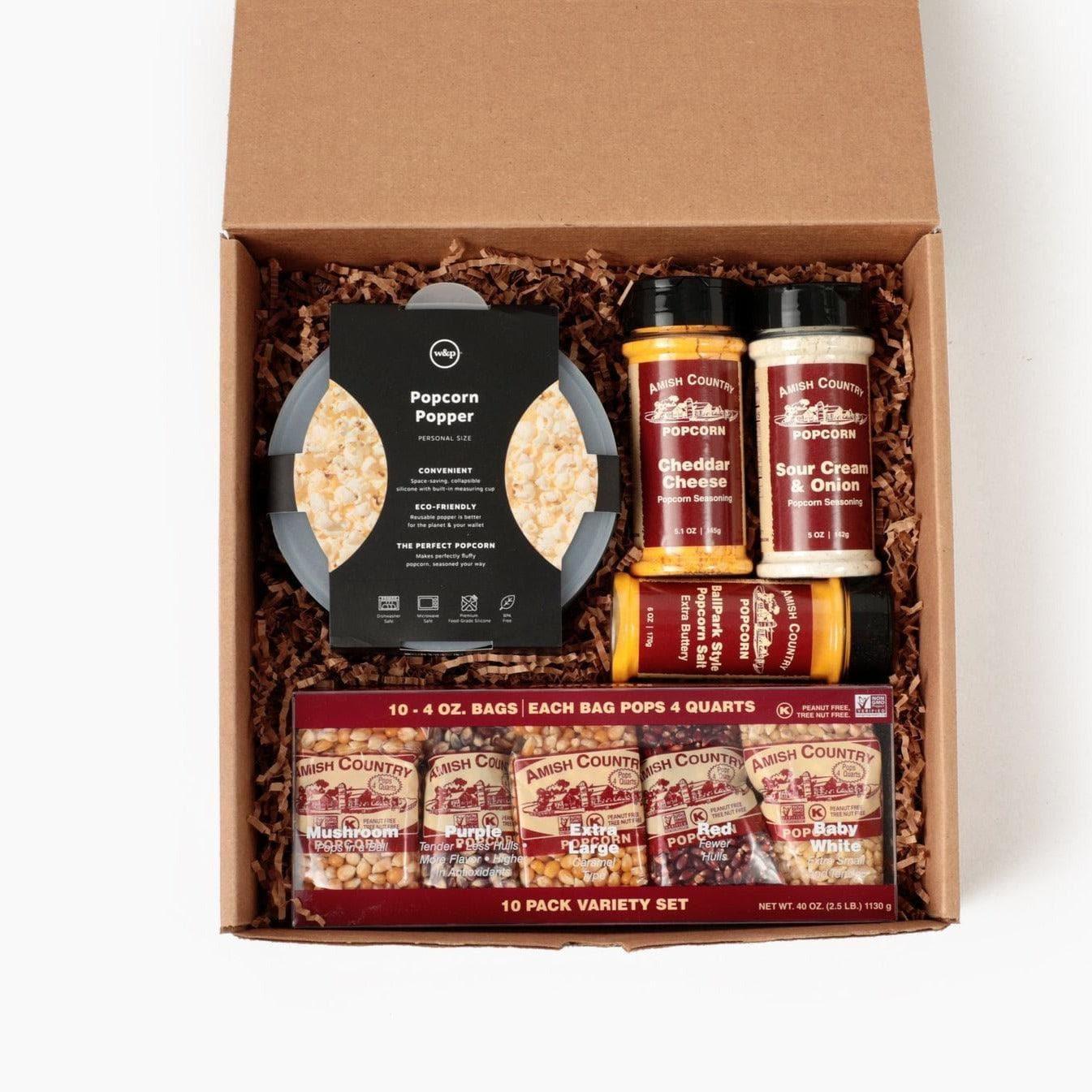 Looking for the perfect gift for the film fanatic in your life? Look no further than our Popcorn & Movie Gift Box! This basket comes complete with all the fixings for a cozy night in, including gourmet popcorn, a silicone popcorn popper and best-selling seasonings.