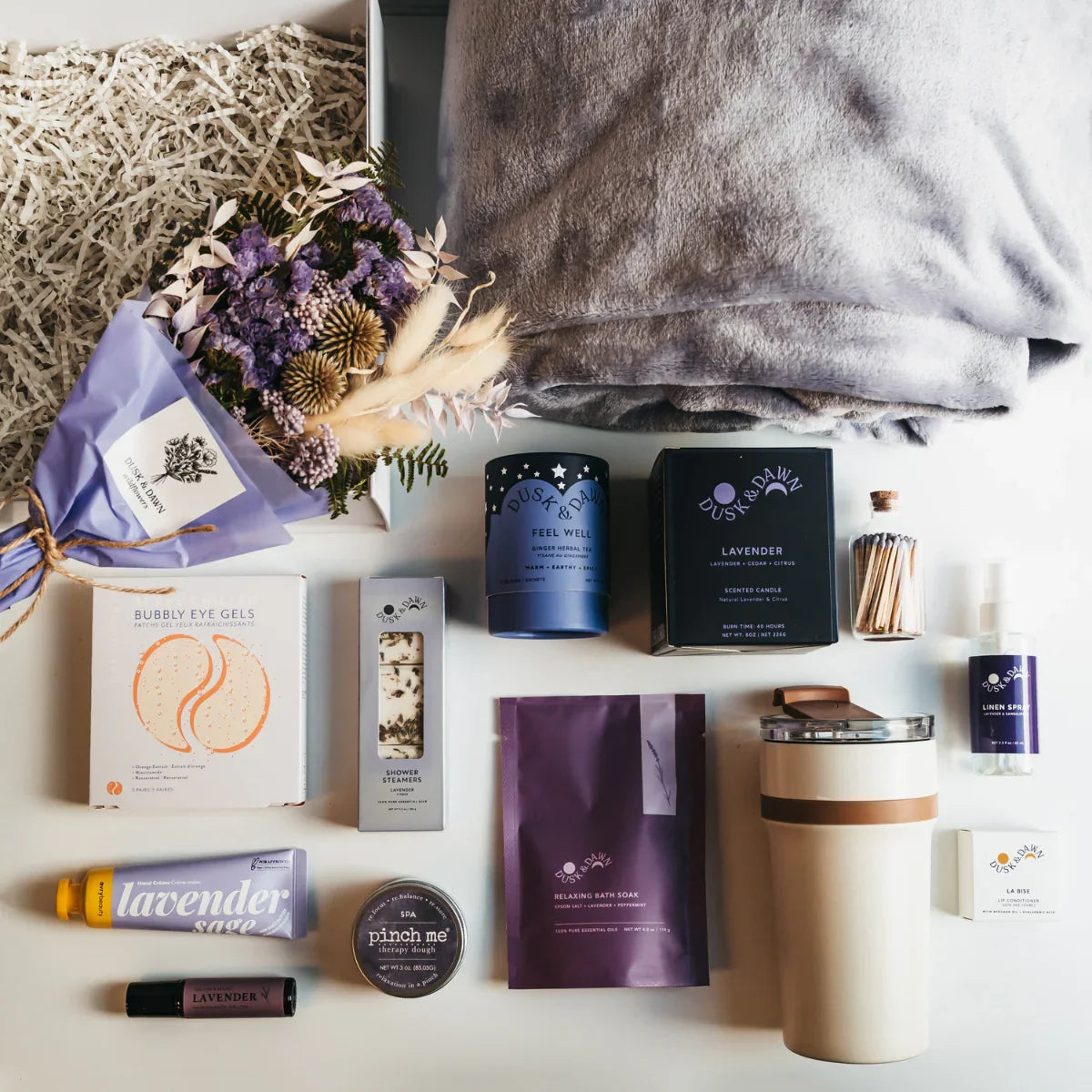 Wrap them in comfort, calm, and a little luxury. This thoughtfully curated lavender-themed gift box is designed to soothe, restore, and uplift — the perfect way to say thinking of you, get well soon, or you deserve a break.