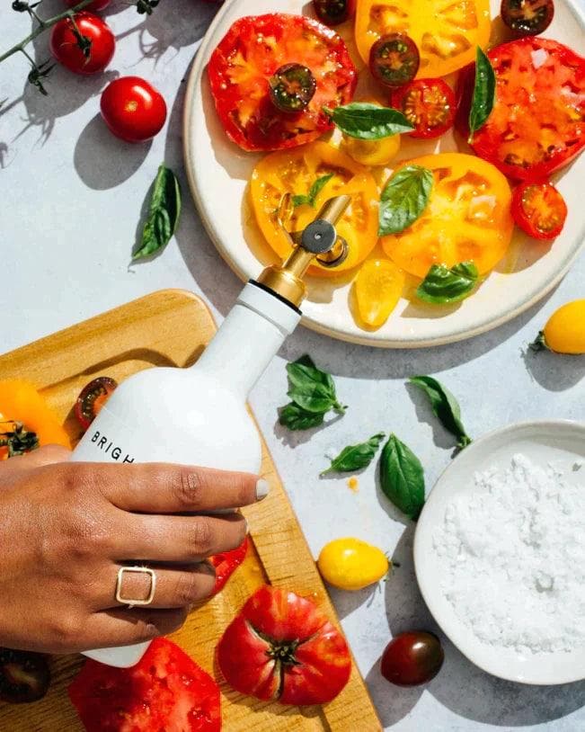 Brightland was born to elevate simple, analog moments in the kitchen. Our consciously crafted products support small U.S. family farms and makers. Brightland extra virgin olive oils and vinegars are lovingly made on small family farms in California and contain nothing more than fruit, love and sunshine. Our mission has always been to pursue living in a golden state by celebrating everyday elegance, endless curiosity, and being fully engaged in the present. We have collaborated with exciting brands and partners including Sweetgreen, Oishii, The Slow Factory Foundation, The Cartorialist and Food52, and we have been featured by The New York Times, The Wall Street Journal and Food & Wine.