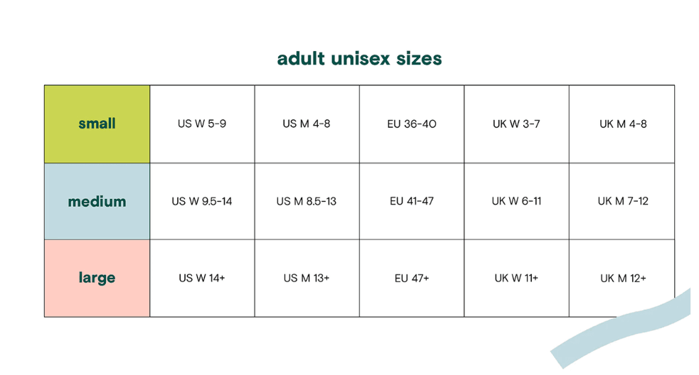 • Medium fits women’s US shoe sizes 9.5-14, men's US shoe sizes 8.5-13, and EU shoe sizes 41-47.
